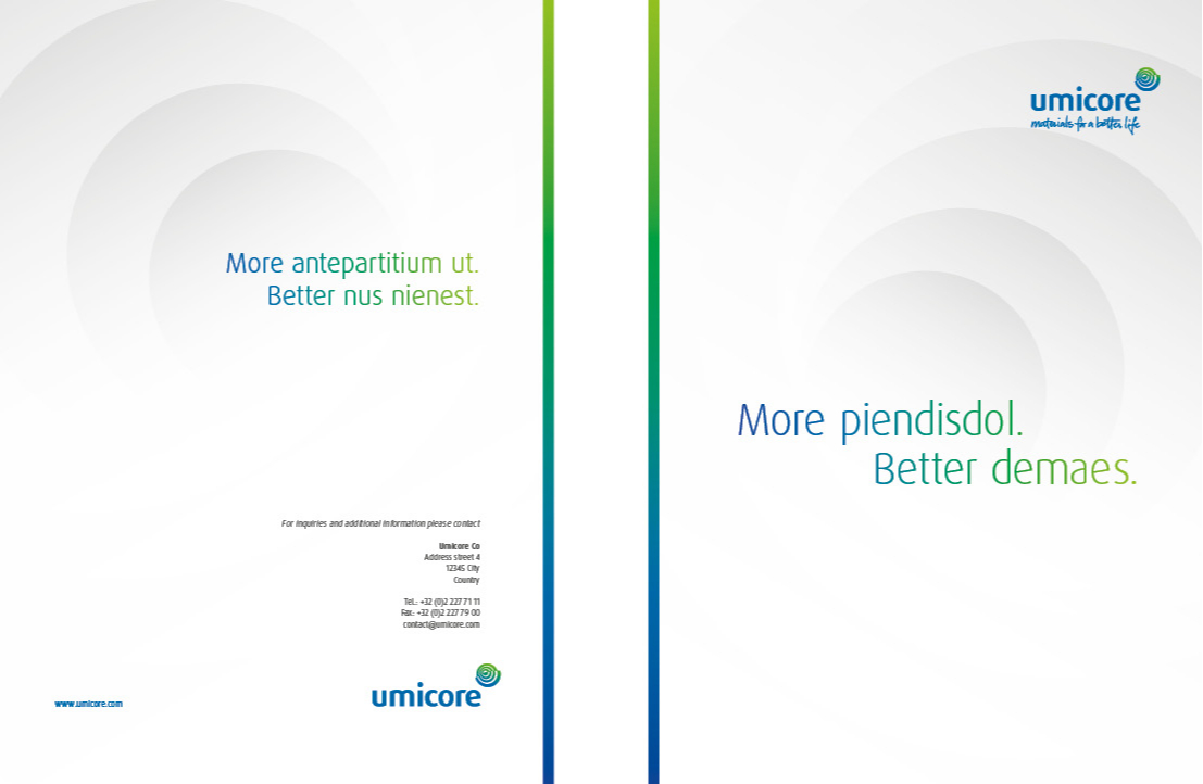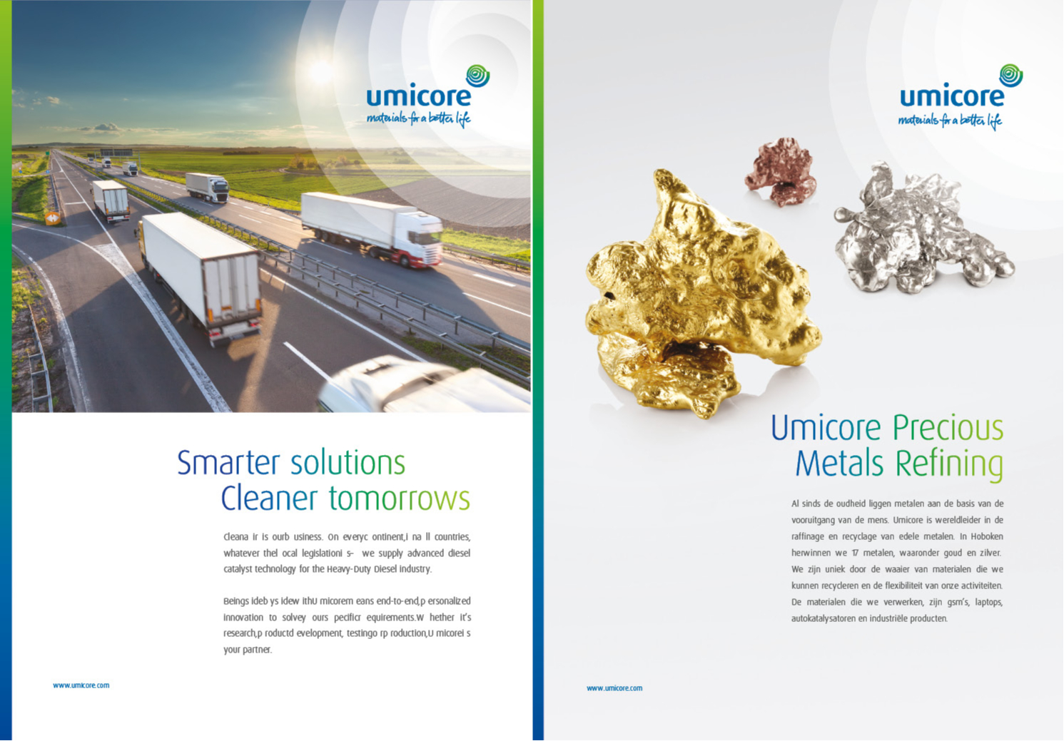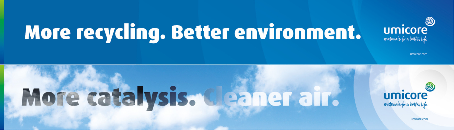 In this structure, the first part refers to the “materials” or “services” part of the product offering, while the second part is a comparative (any comparative, not just “better”) that refers to the “better life” result that can be obtained when our materials or recycling services are used. The comparative brings a compelling advantage to the selling situation. This may work as a universal campaign concept for Umicore.