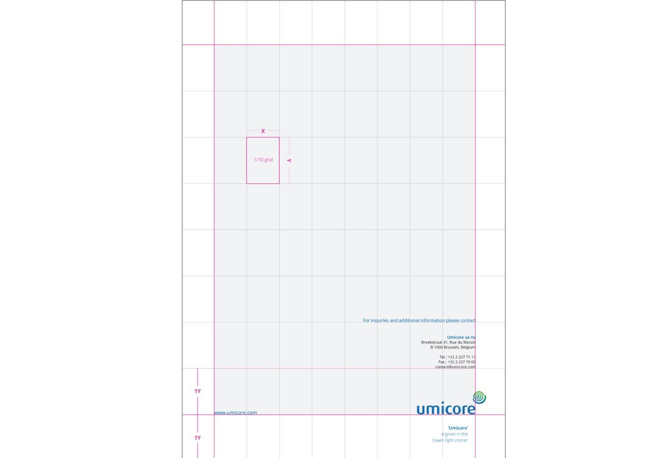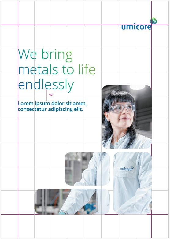 - Use layout grids with discipline to maintain a consistent style across Umicore brochures.