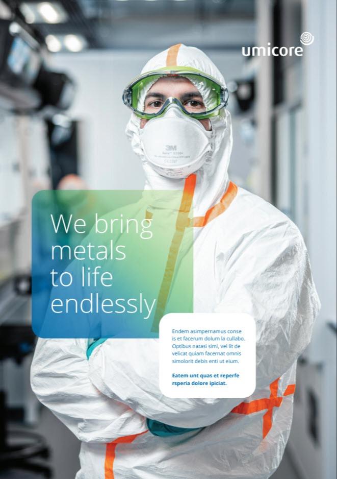 Follow Umicore’s key layout principles for brochure covers.