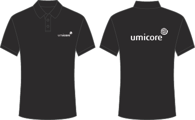Clothing and uniforms can be branded for Umicore employees in their work environment, following all safety regulations in place. Also clothes for special occasions like sport events where Umicore employees compete are part of this guideline.