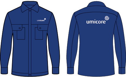 The Umicore master logo (without strapline) should always be located on the upper left chest section, or the ‘heart’ location, on all uniforms or clothing items.