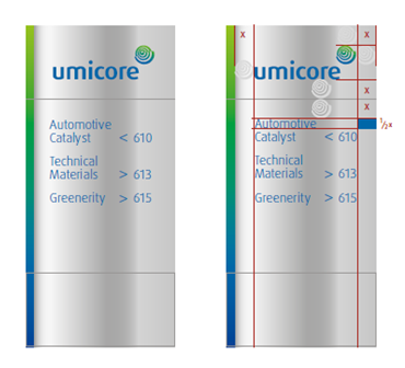 - Always ensure the Umicore marque is visually centered within every given shape