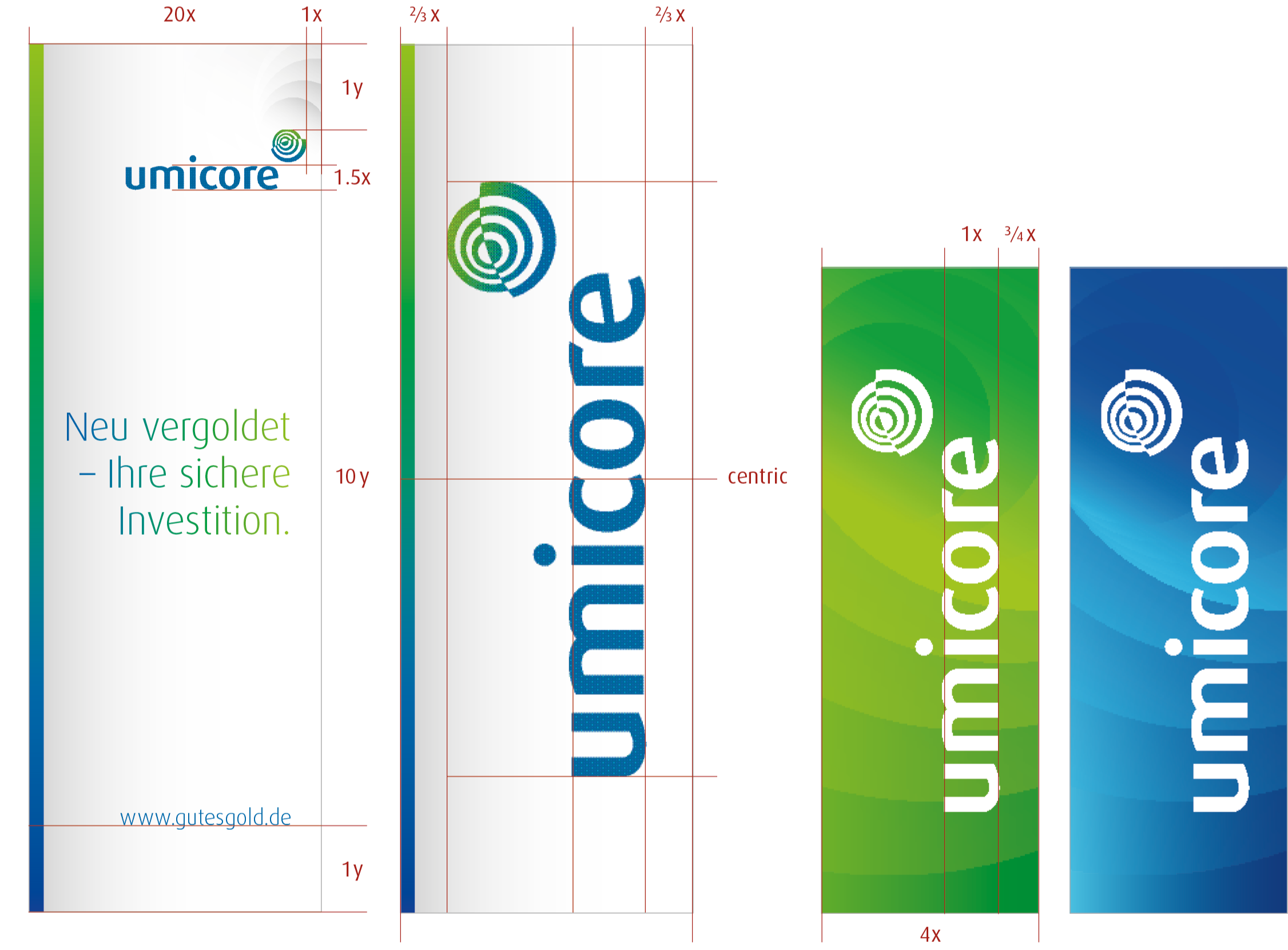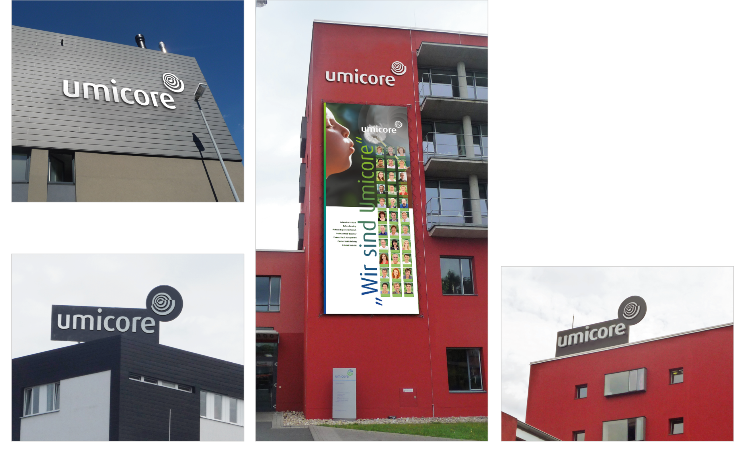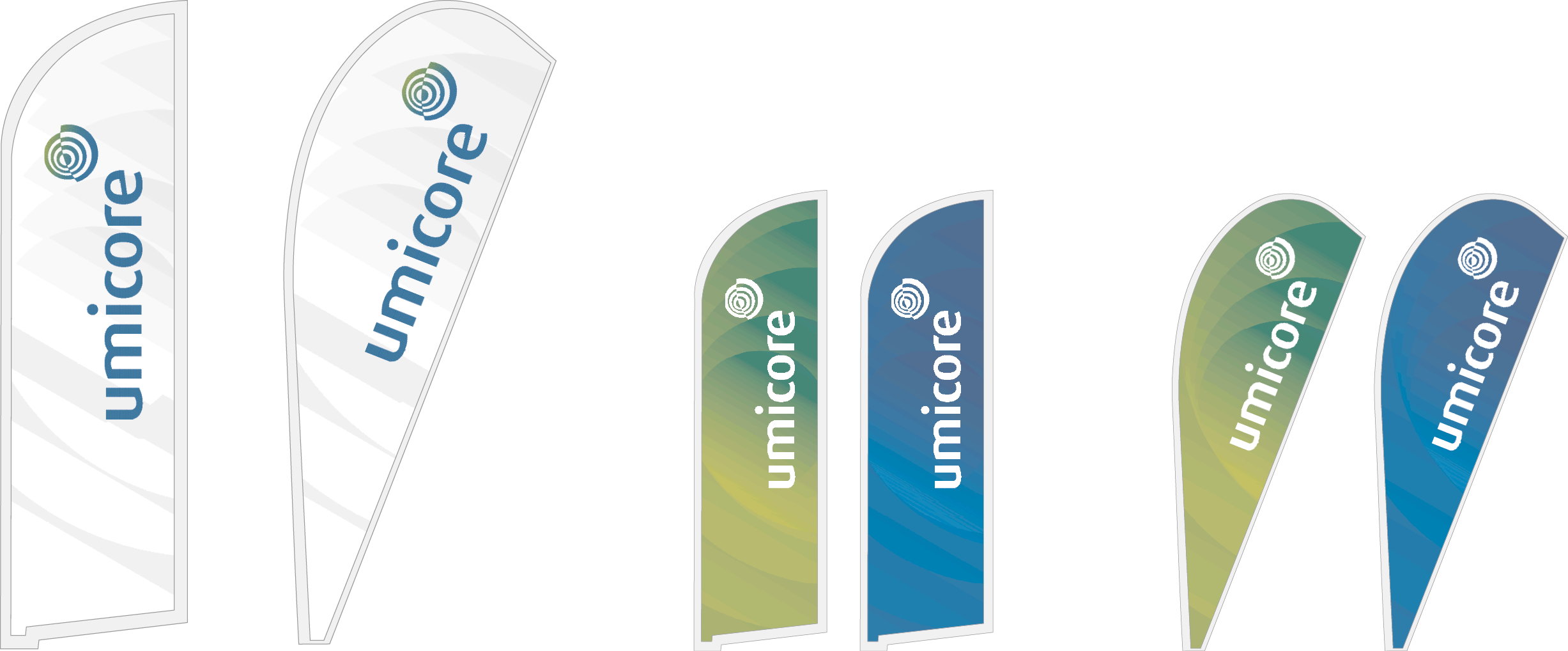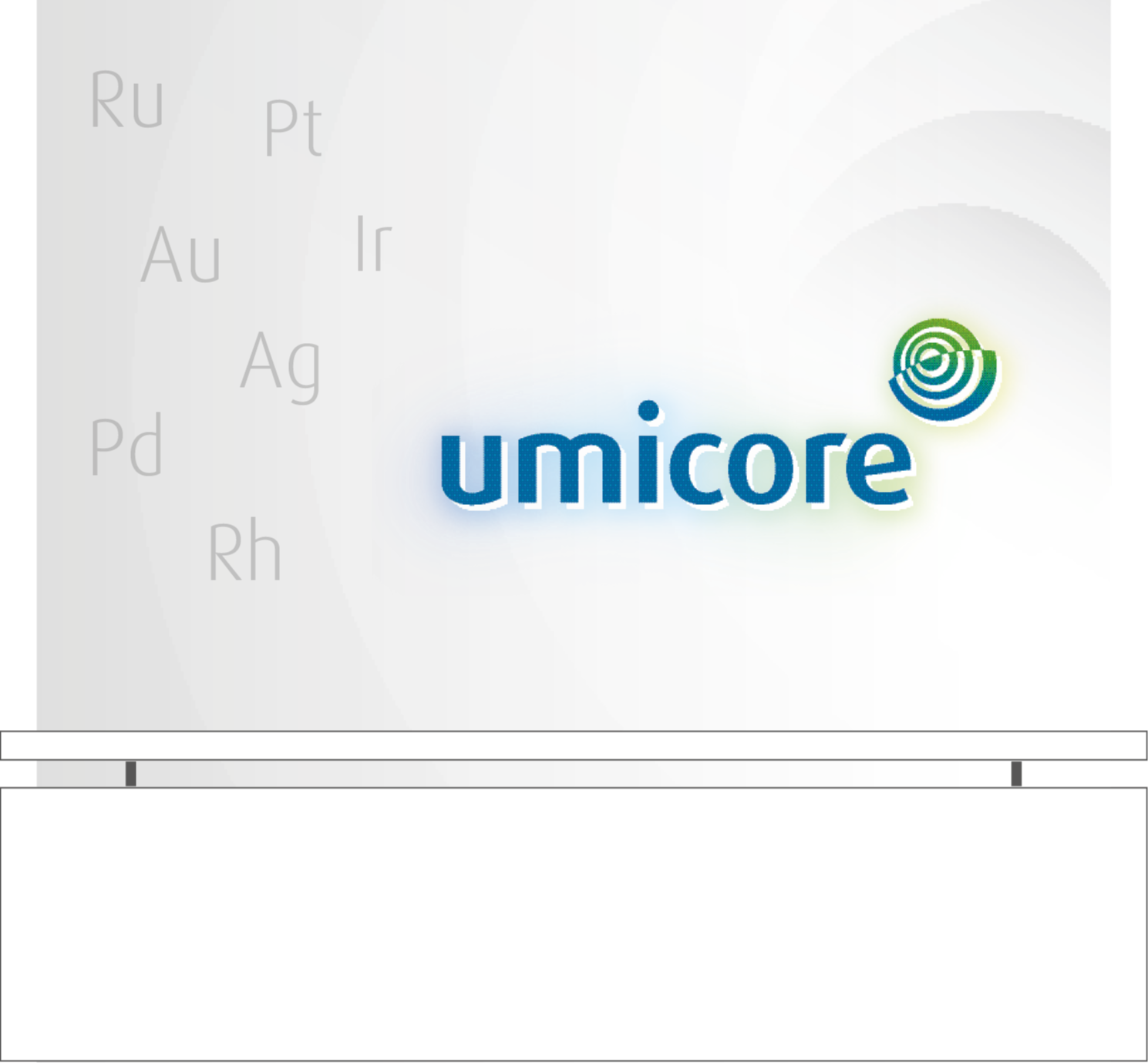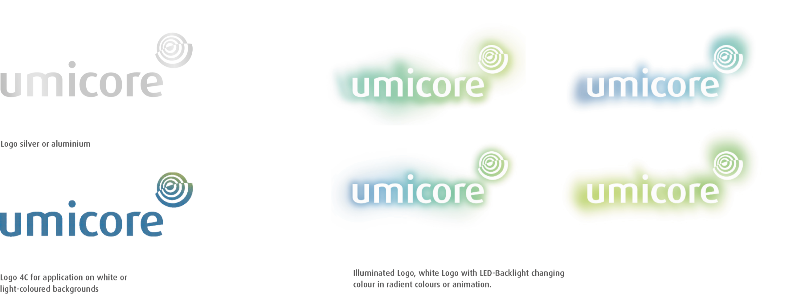 The typo could be made in gradiant-colour, black, or Umicore-blue. The material can be metal, plastic or paper.