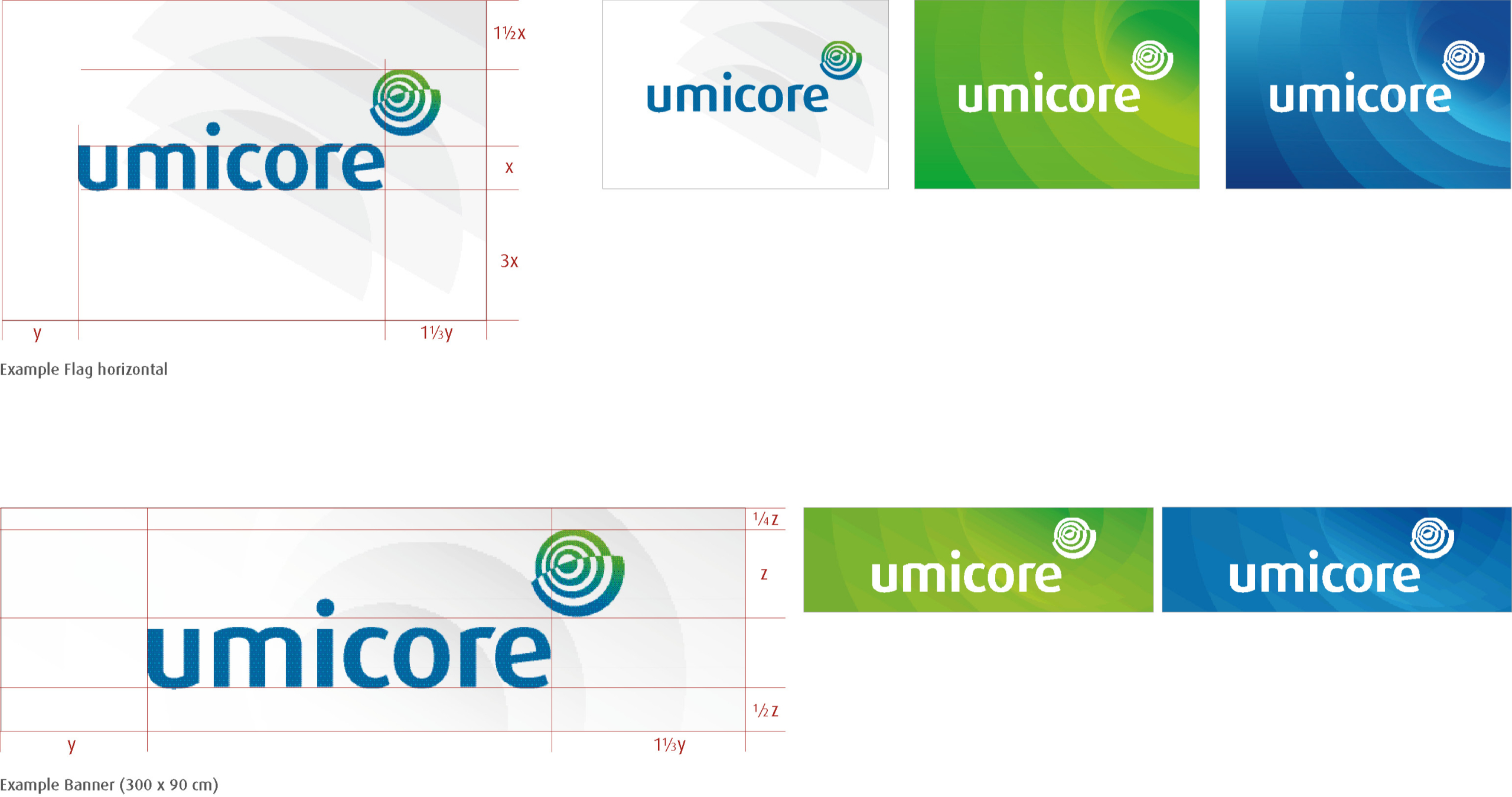 - Marque should always be at the top of the sign, centered as shown in the measurement. X is the size of the Umicore Symbol. Horizon line separates marque from information
