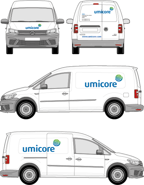 Umicore vehicles are powerful representatives of the Umicore brand. Using vehicle graphics is a good way to create an identity for fleet vehicles.