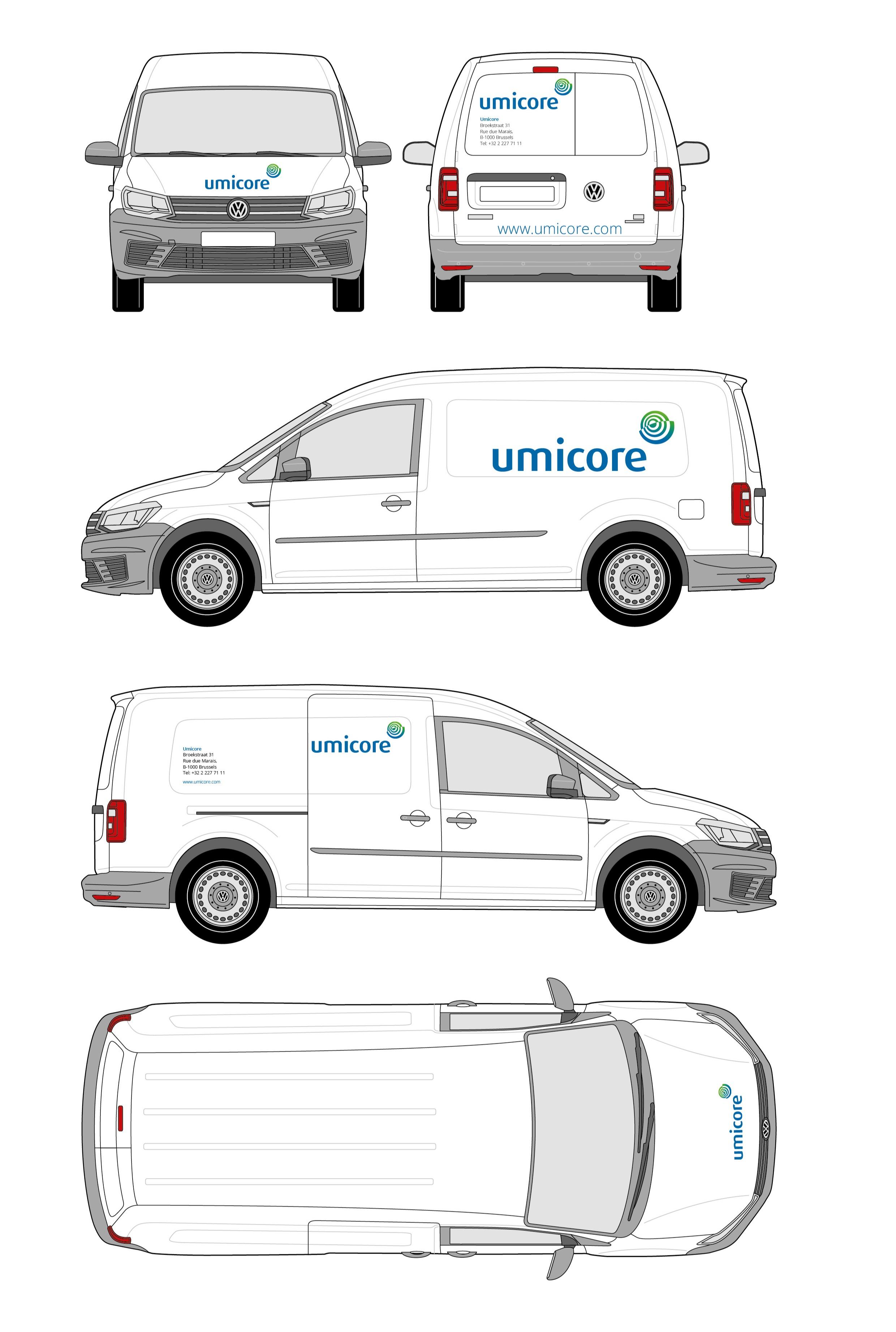 Umicore vehicles are powerful representatives of the Umicore brand. Using vehicle graphics is a good way to create an identity for fleet vehicles.