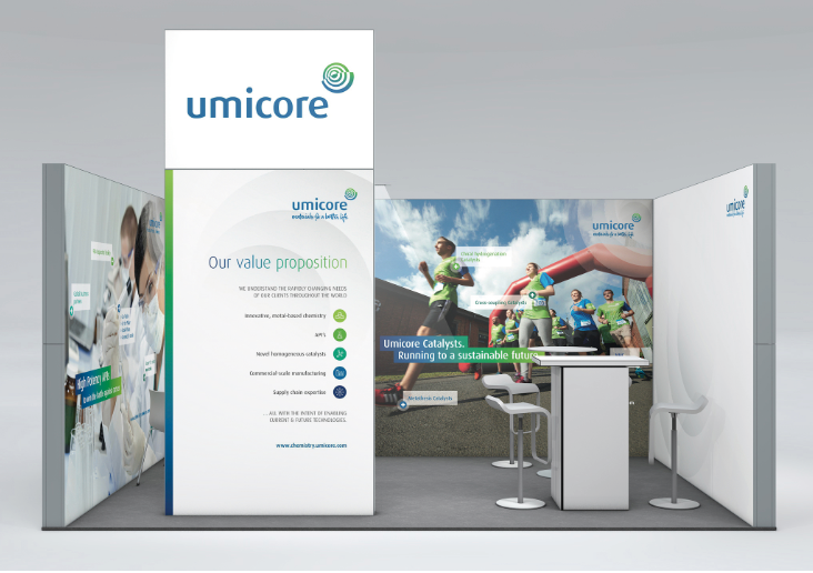 All guidelines on Umicore's key lay-out principles and graphic Identity should be strictly consulted during the design of trade show appearances.