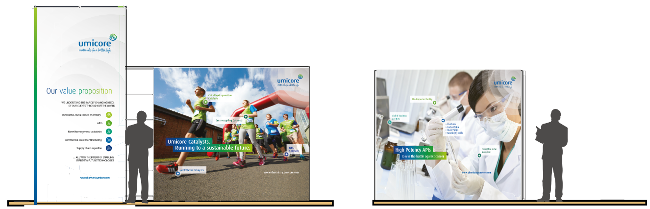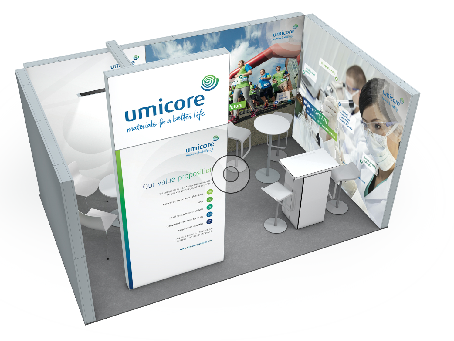 We have available a system stand solution which can be used up to 18 sqm. It offers a proffesional exhibition stand design with standardized elements that is still highly flexible.