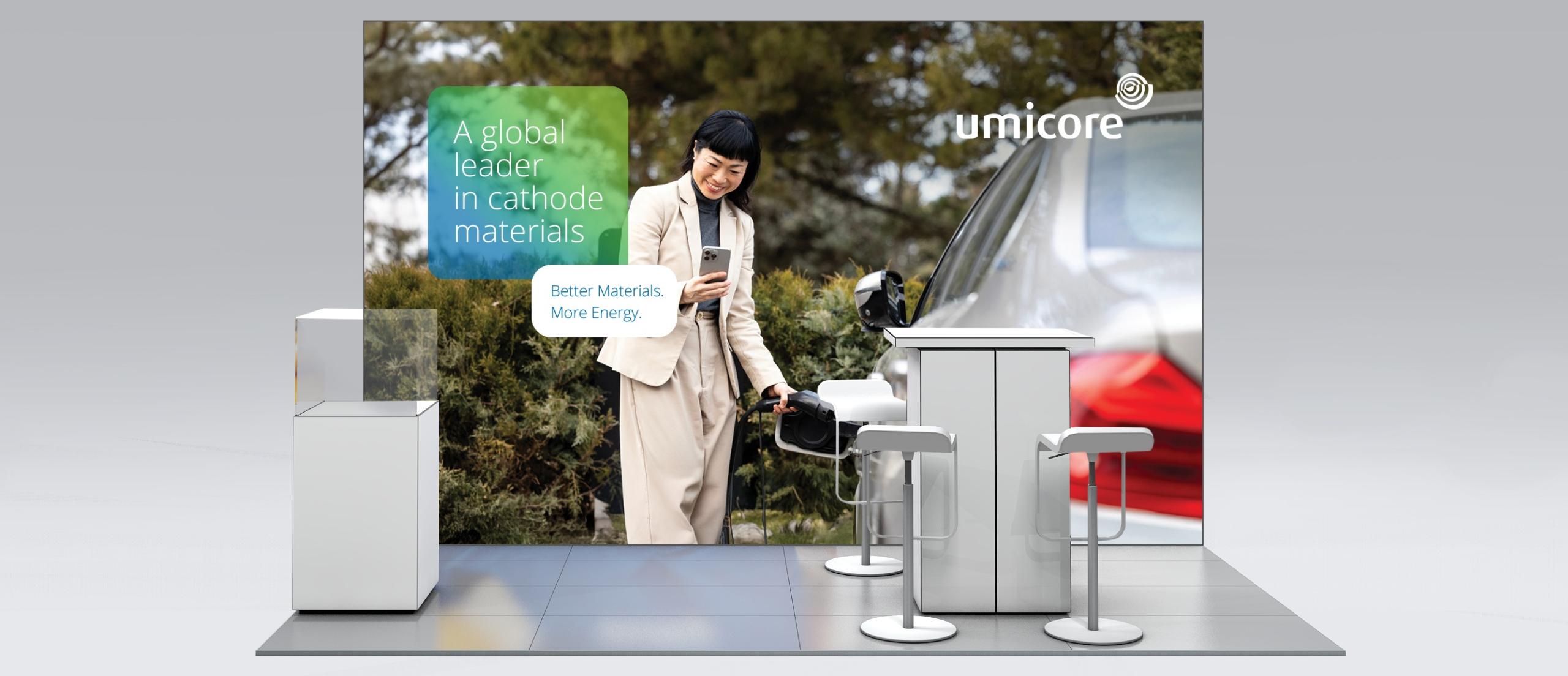 For trade show participations below 20 sqm, we offer standardized system stand solutions or as an alternative mobile solutions. These smaller formats follow our Design & Concept guidelines and ensure a consistent Umicore look & feel, while keeping planning and installation effort efficient.