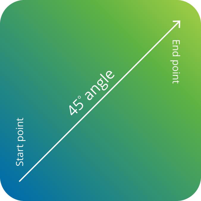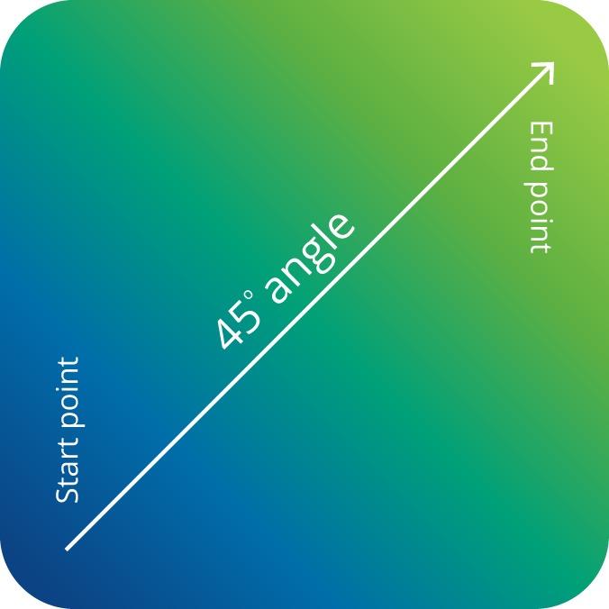 Always set the gradient at 45 degree, starting from the lower-left corner towards the upper-right corner.