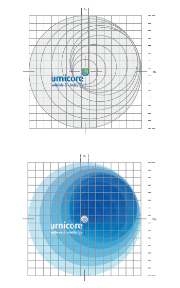 The Radiance is intended to be used as the dominant graphic device on printed covers, title pages in presentations, and behind the Umicore logo in advertisements and printed literature. Usually, a segment of the device is placed in the upper right hand of a Umicore page, screen, or slide.