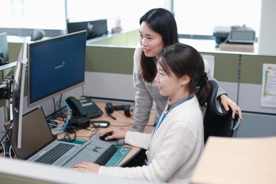 We show our people in their daily working lives. They are focused on the job or interacting together when they have a break. Depending on the audience (see employer branding guide) employees will either be concentrating on their work, interacting with colleagues or looking straight at the camera (safety permitting). As a guide, subjects featured should be captured from the waist up.