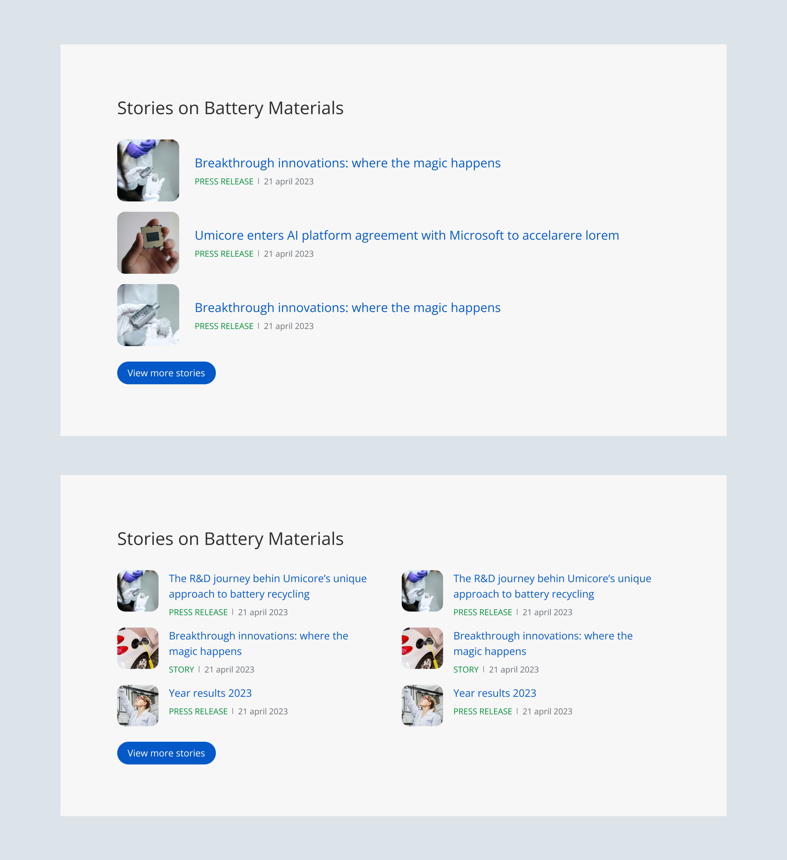 This component allows to display news items in a straight forward listing of 3 or 6 items.