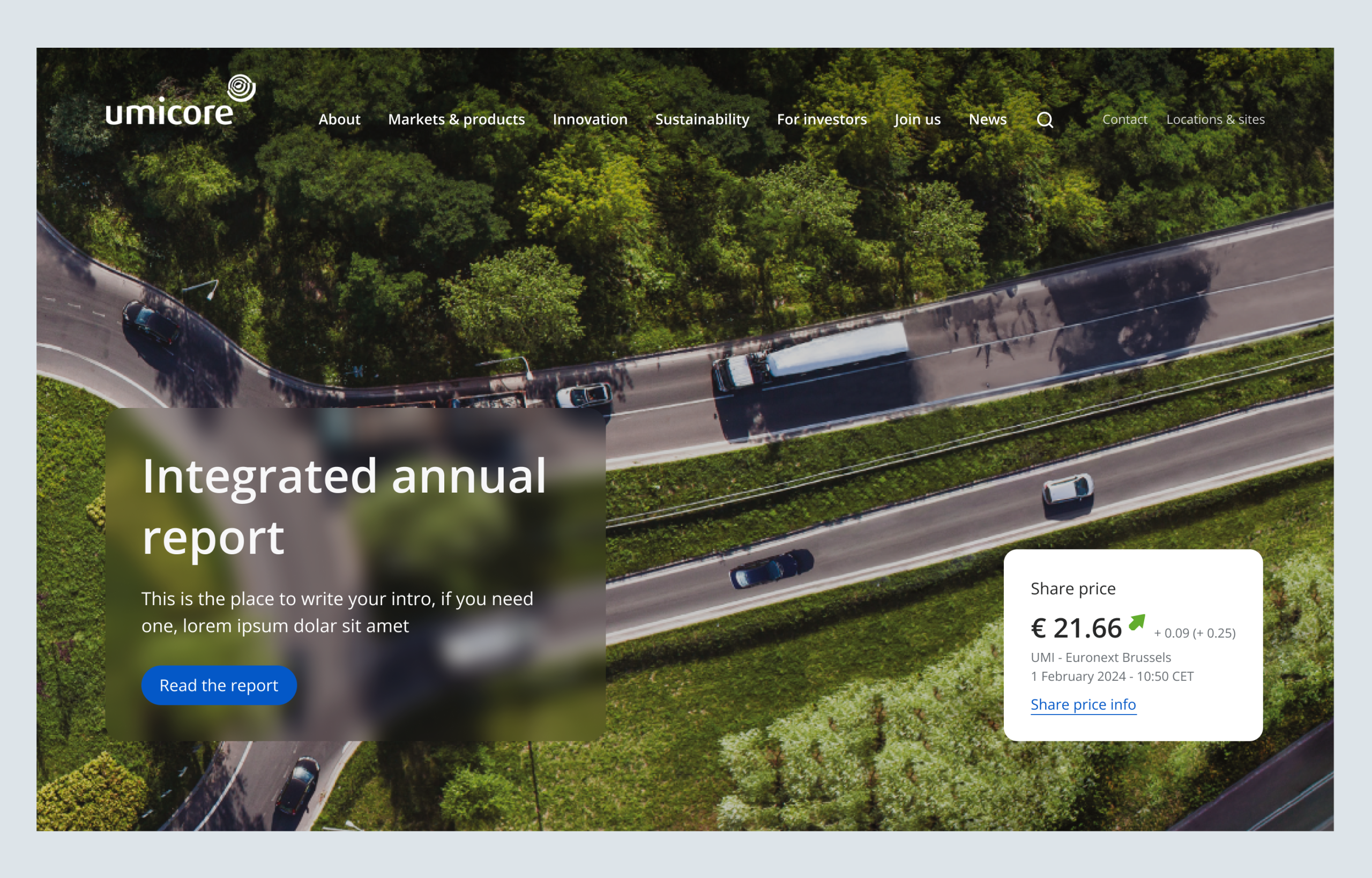 It is possible to display the share price on the hero header. This feature was developed for use on the Investor Relations landing page but can be activated on all hero headers when required.