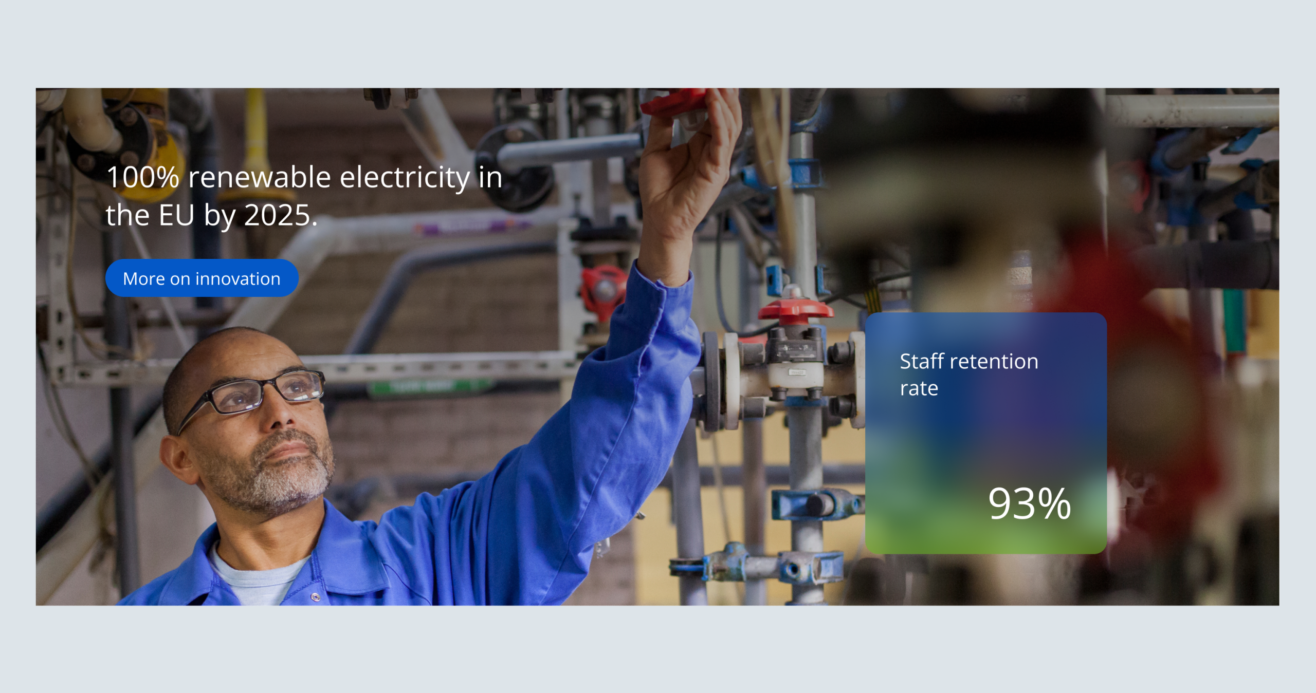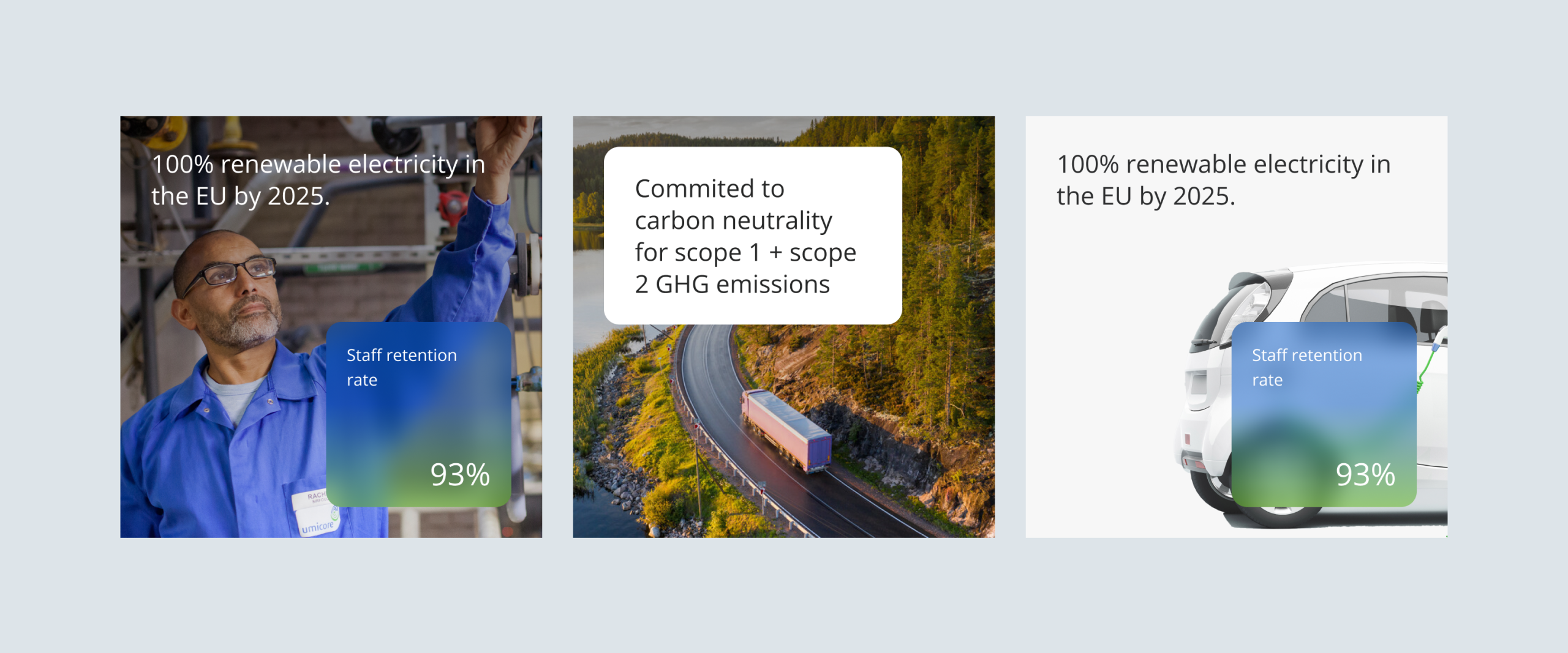 The stat number is placed on a transparant overlay to guarantee legibility. The overlay background color can be grey or the Umicore gradient.