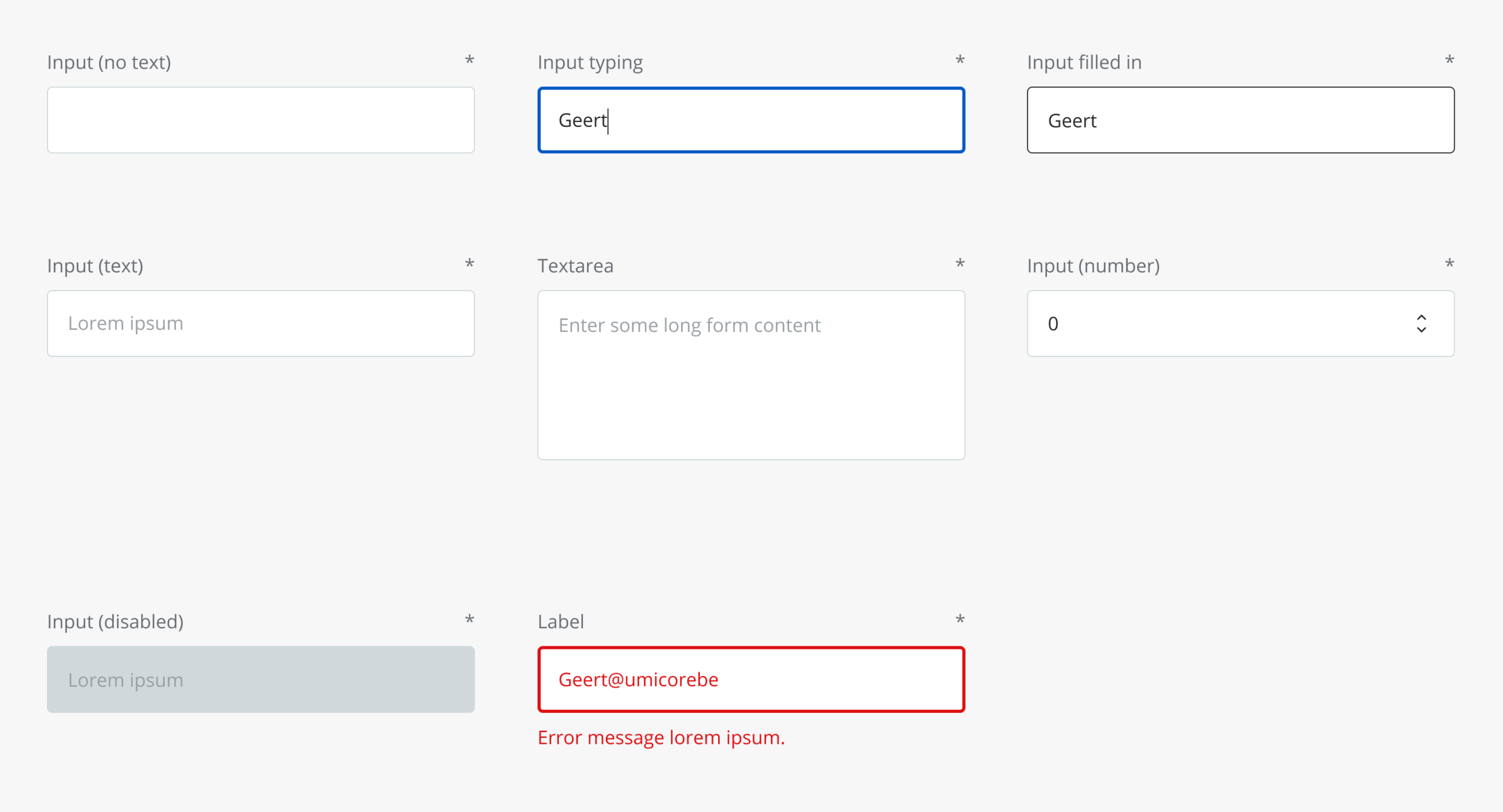 Use the form builder to create various forms on the website. All forms use the same styling and patterns. Fields are automatically stacked.